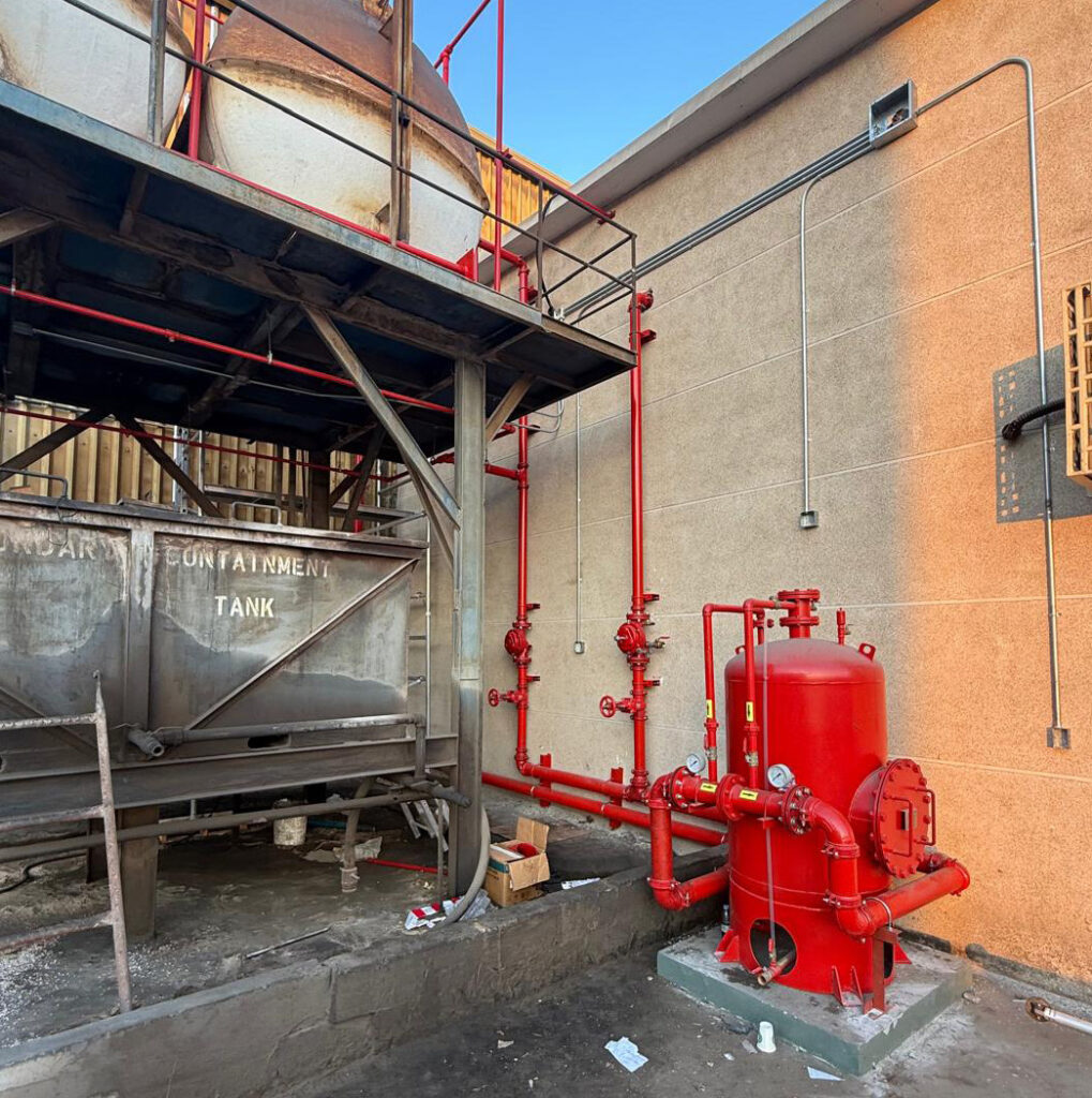 The scope included addressable fire alarm systems, sprinkler and standpipe networks, hose cabinets, fire pumps, underground water storage, foam suppression systems, water curtains, specialized fire infrastructure, and a fully integrated firefighting and alarm control network.